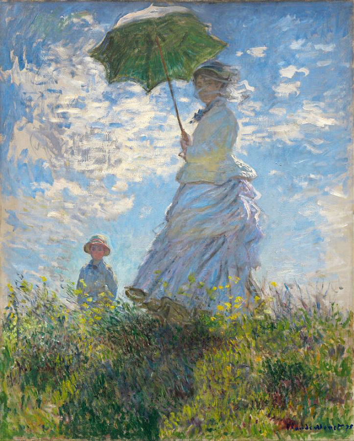 모네의 양산을 쓴 여인은 햇빛이 비치는 들판에 양산을 들고 서 있는 모네의 아내 카미유 모네와 그들의 아들 장 모네를 묘사하고 있습니다. 양산을 쓴 여인은 1875년에 완성된 클로드 모네의 유명한 그림입니다. 이 작품은 빛과 움직임의 효과를 포착하는 모네의 기술을 잘 보여줍니다.