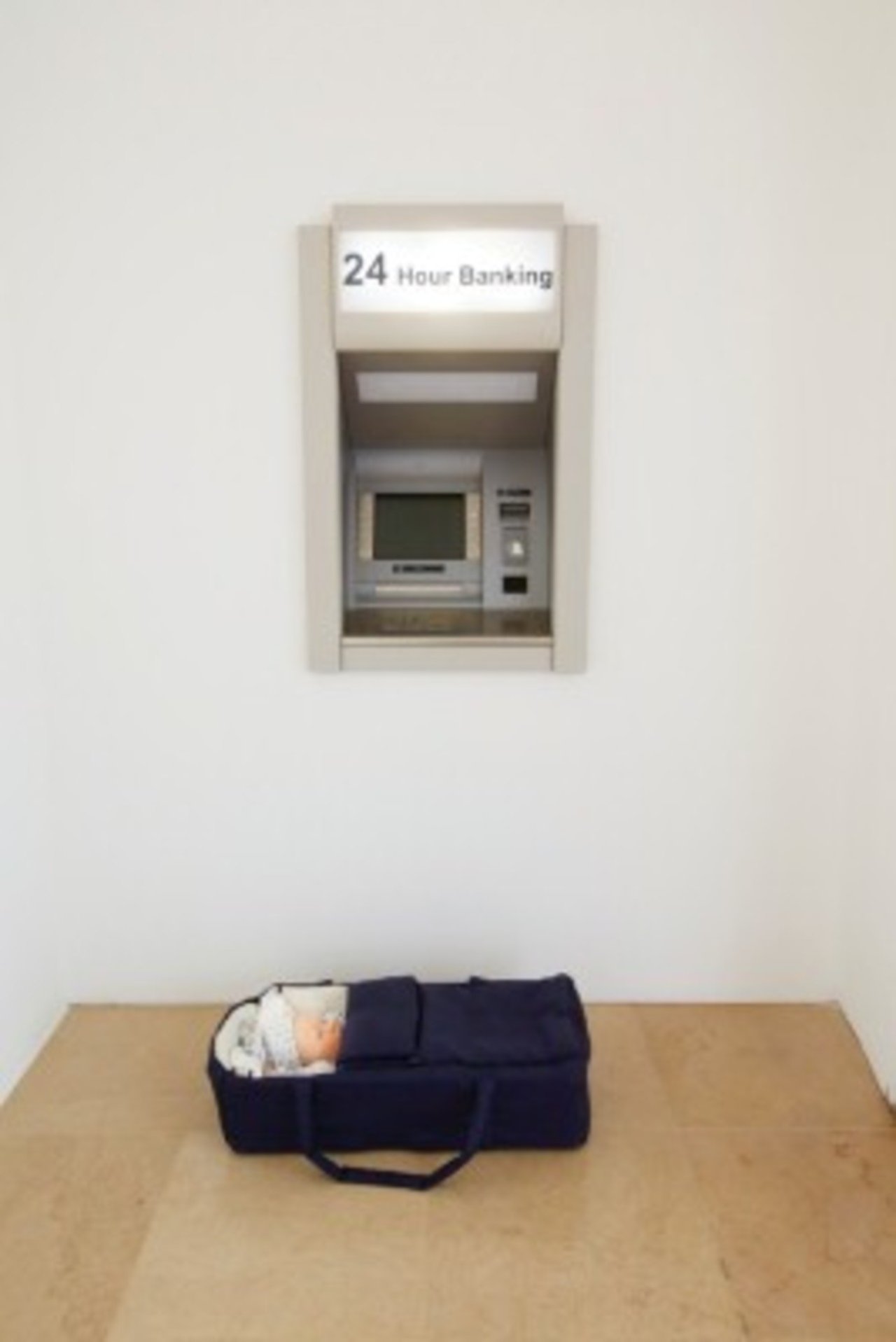 "현대모세"는 고대의 해방 이야기와 현대의 감금시나리오를 병치하여 성경 속 인물을 현대적으로 재해석한 작품입니다. 갈대상자 속에 나일강물에 띄운 모세는 애굽 공주의 눈에 발견되었습니다. 그런데 공항을 배경으로 한 모세의 모습은 도착하지 않고 계속되는 여정의 상징이 됩니다. 이 작품은 끝없는 기다림과 현대 항공여행에 수반되는 이동성에 대한 잘못된 약속을 우회적으로 표현하고 있습니다.
