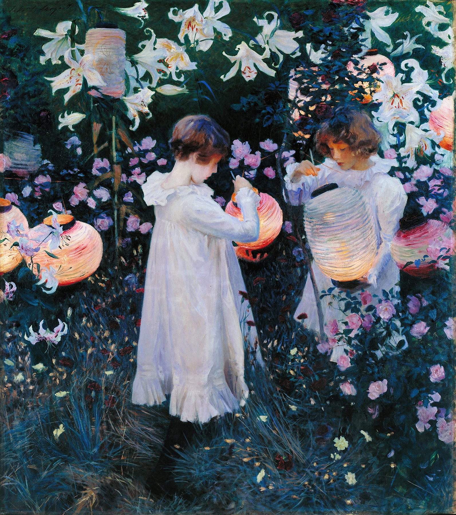 런던의 테이트 브리튼 박물관에 소장된 이 아름다운 작품 속의 소녀들은 태양이 지고 열기도 빛도 없이 모든 아름다움이 어둠 속으로 사라져 갈 때 우리 마음의 정원에 등불을 밝혀줍니다. 이 그림의 주인공인 소녀 돌리와 폴리 바나드가 등불을 밝히자 따뜻한 등불은 소녀들의 얼굴과 아름다운 꽃들의 얼굴을 다시 비추어 마법처럼 정원이 다시 깨어나게 만들어줍니다.꽃들은 인상주의적인 붓터치로 느슨하면서도 생생하게 표현되었고 소녀들도 세심하게 묘사되었습니다.