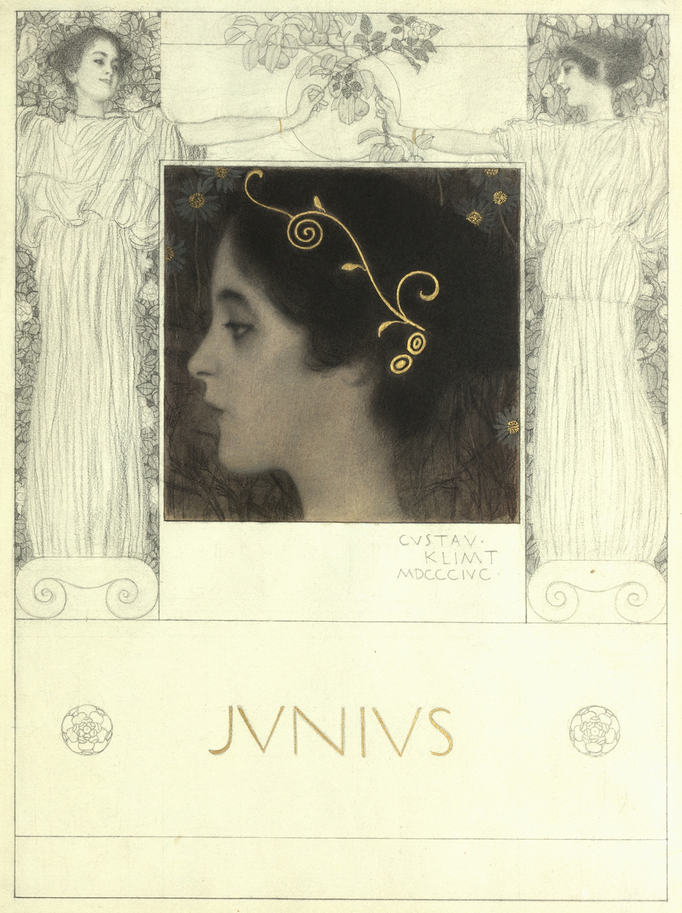 구스타프 클림트의 **「Junius」**는 클림트의 초기 작업 중 하나로, 1896년경에 제작된 것으로 추정됩니다. 이 작품은 그가 잡지와 책의 삽화를 담당했던 시기의 스타일을 반영하며, 상징주의와 장식적 요소가 결합된 점에서 그의 독특한 예술 세계를 잘 보여줍니다.